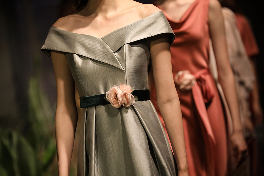 多元印花结合不同质感、不同设计工艺的优质面料,意在表现华体会电竞竞猜意境之美。本次设计飘逸柔美,却加入了大量西式立裁和女性魅力的点缀细节,更多展现的是一种现代女性最本真的内在美,浪漫而富有想象力。