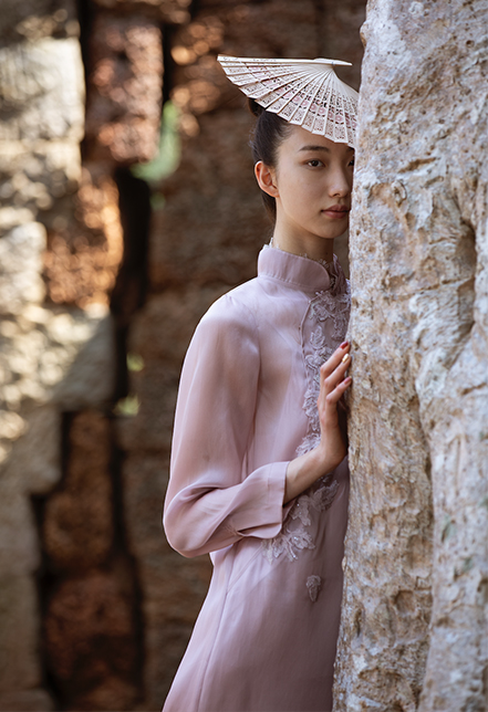 The creations are made from pure natural superior silk, rib, raw silk, linen, wool and silk wool with elegant colors and comfortable and smooth silhouettes. By adopting oriental traditional handicraft, they strive to center around people and highlight harmony to allow graceful, calm, free and romantic women to demonstrate their romantic and unrestricted free will in their tasteful life.